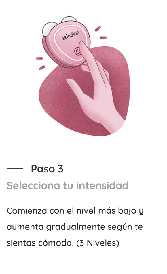 El dispositivo skindion es lo suficientemente seguro para utilizarlo todos los días, ya sea por la mañana o por la noche. Recomendamos su uso una vez cada 24 horas durante al menos 5 minutos.